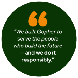 At Gopher Site Services, we help office, industrial, and commercial property stakeholders achieve real sustainability results — not just green buzzwords. From waste diversion tracking to smarter logistics that lower fuel usage, our platform enables you to meet your ESG mandates while reducing costs and enhancing compliance.