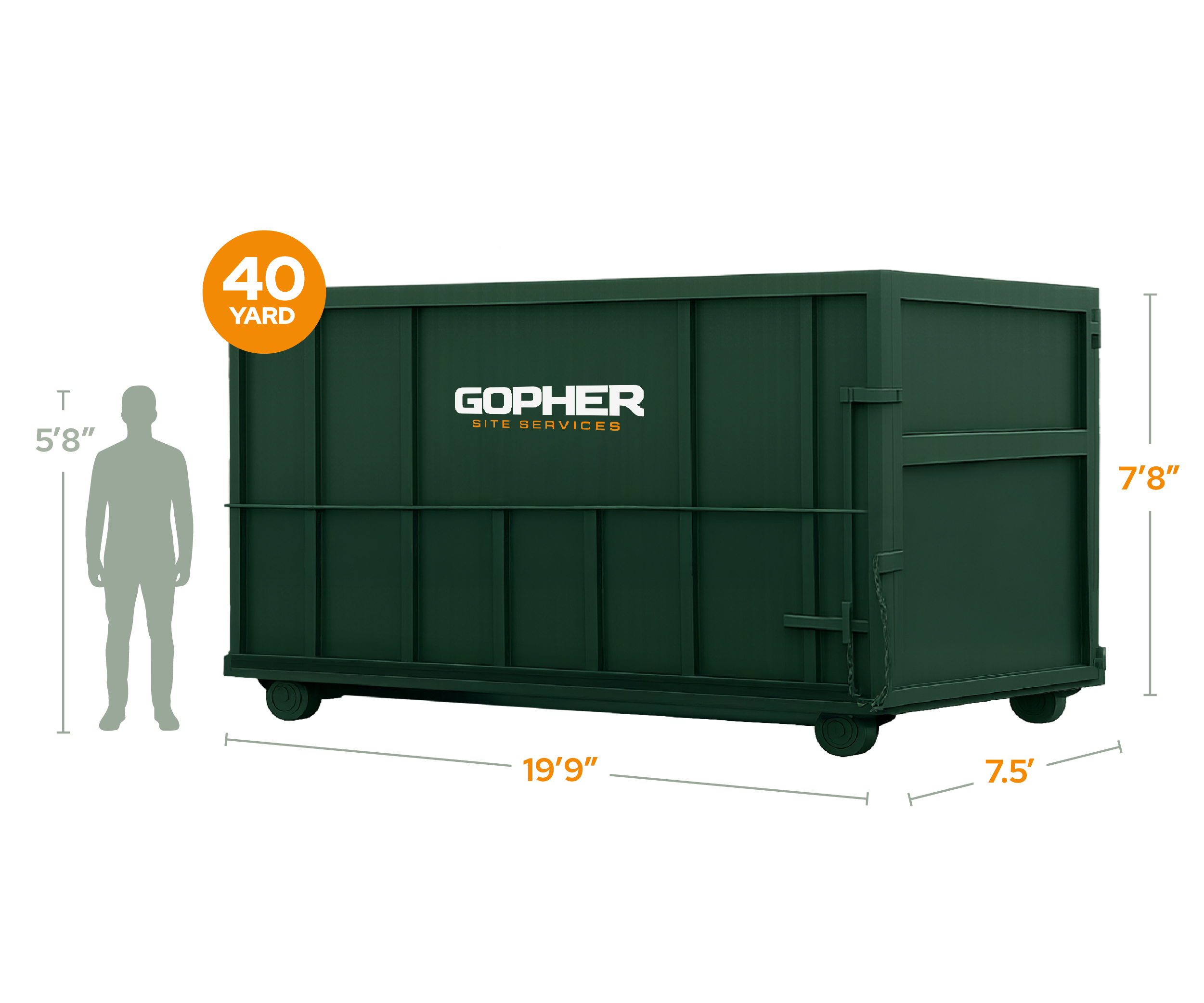 Designed for large-scale construction and commercial job sites, our 40-yard dumpster holds massive amounts of demolition debris, siding, and industrial waste.